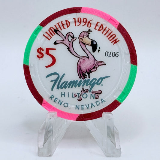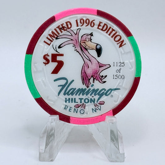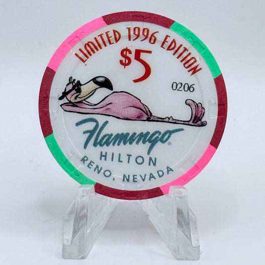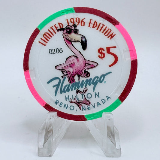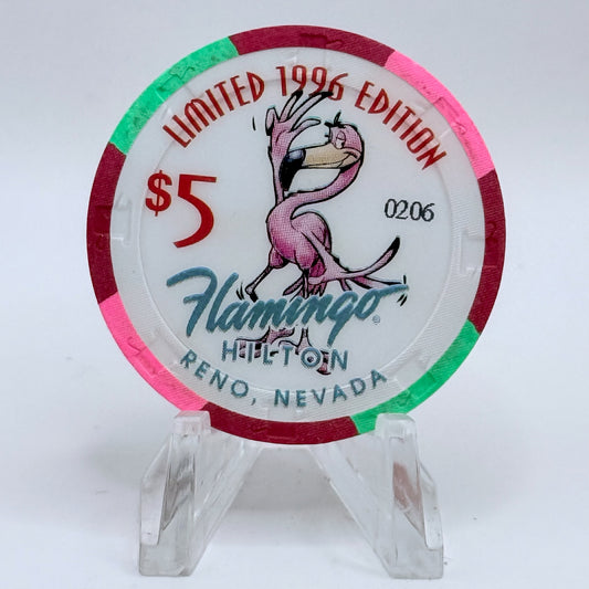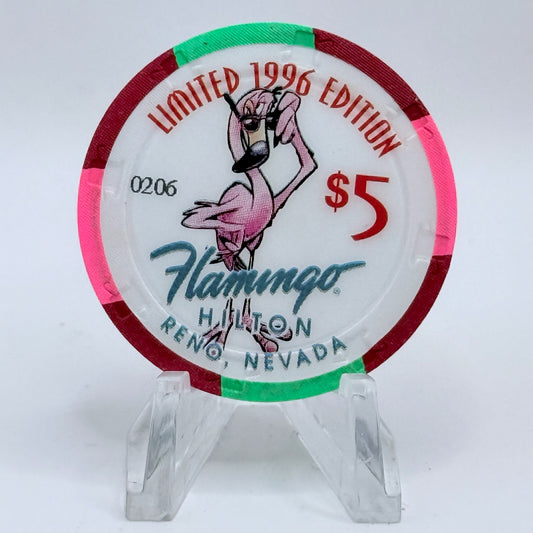 Flamingo Hilton Reno Nevada 1996 'Endangered Species - Roseate Spoon Bill' Series 10 LE $5 Casino Chip N8326