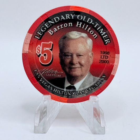 Las Vegas Hilton Las Vegas Nevada 1998 'Legendary Old Timer Barron Hilton' LE $5 Casino Chip V2774