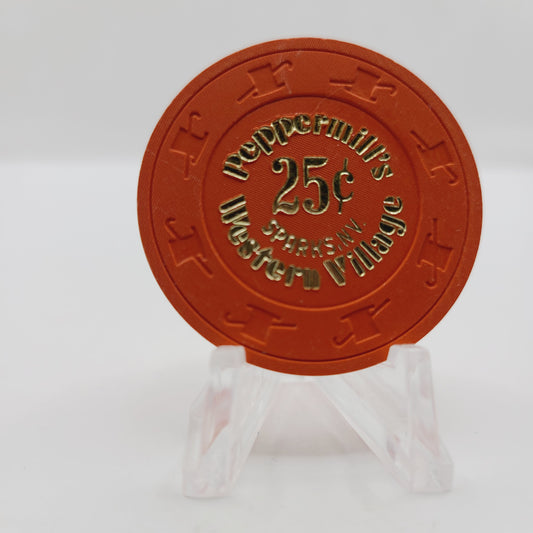 Peppermills Western Village Inn and Casino Sparks Nevada 1987 $.25 Casino Chip N3127