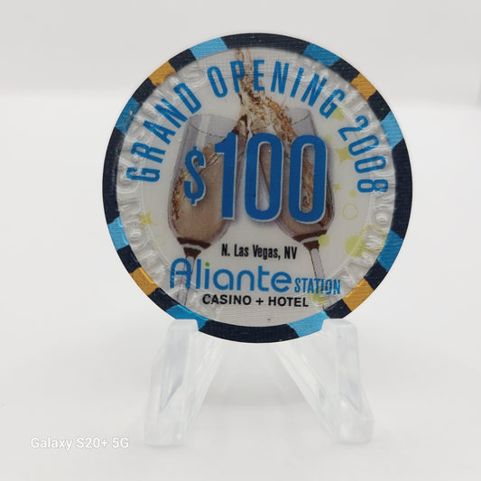 Aliante Station Hotel Casino Las Vegas Nevada 2008 "Grand Opening" $100 Casino Chip E8721