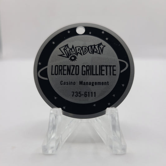 Stardust Hotel Casino Las Vegas Nevada 1960's "Lorenzo Gilliette" $1000 Metal Business Card D1177 Drilled
