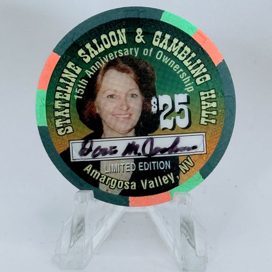 Stateline Saloon Amargosa Valley Nevada 1997 'Doris Jackson - Autographed' LE $25 Casino Chip V1596