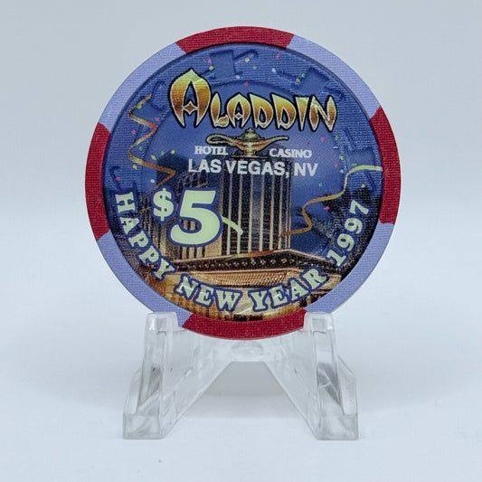 Aladdin Las Vegas Nevada 1997 'Happy New Year - Kenny Rogers' LE $5 Casino Chip N4086