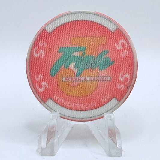 Triple J Bingo & Casino Henderson Nevada 1995 $5 Casino Chip N0555