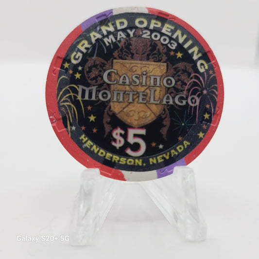 Casino Monte Lago Hotel Casino Henderson Nevada 2003 $5 "Grand Opening" Chip E0193