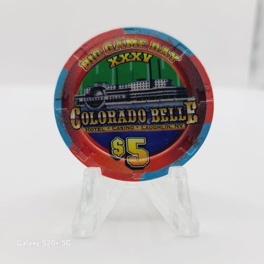Colorado Belle Hotel Casino Laughlin Nevada 2001 "The Big Game Day XXV January 28th 2001" $5 chip V6592
