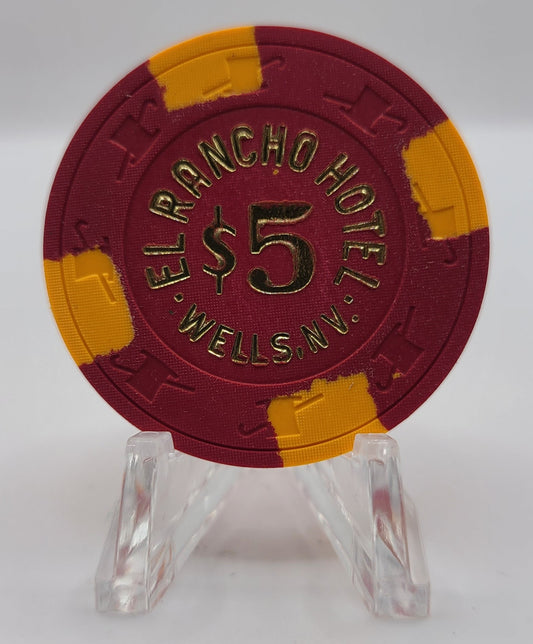 El Rancho Hotel Casino Wells Nevada 1972 $5 Chip N2366