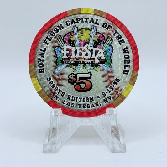 Fiesta Rancho N. Las Vegas Nevada 1998 'Sports Edition - Ron Swoboda' LE $5 Casino Chip N9642