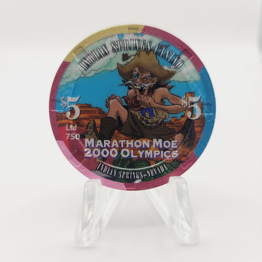 Indian Springs Casino, Indian Springs Nevada "Marathon Moe 2000 Olympics" $5 Casino Chip V6927