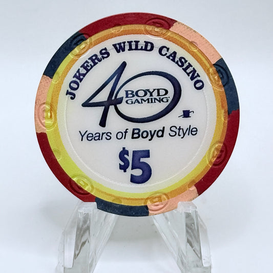 Jokers Wild Henderson Nevada 2015 '40 Years of Boyd Style' LE $5 Casino Chip D2084