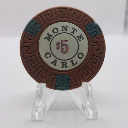 Monte Carlo Hotel Casino Reno Nevada 1970's $5 Chip N5661.C