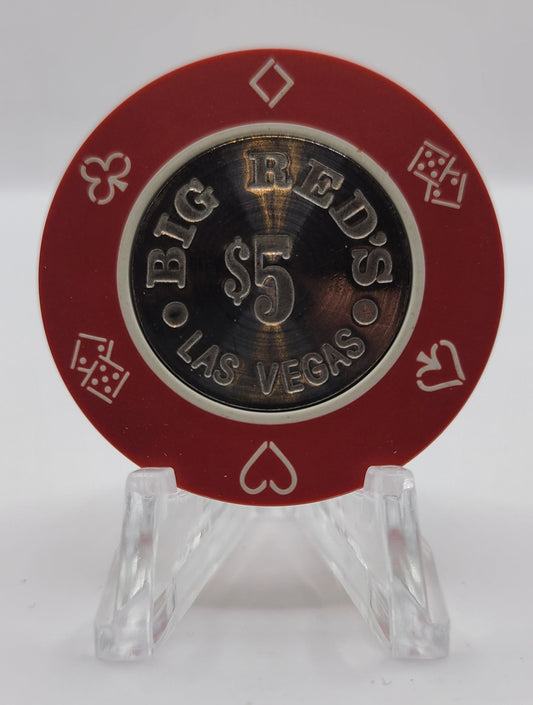 Big Red's Casino Las Vegas Nevada 1981 $5 Coin Inlay Chip N0895