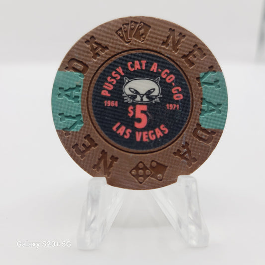Pussycat a' Go-Go Casino Las Vegas Nevada 1995 $5 "Borland Imitation" Chip E7306 (Slight Warping)