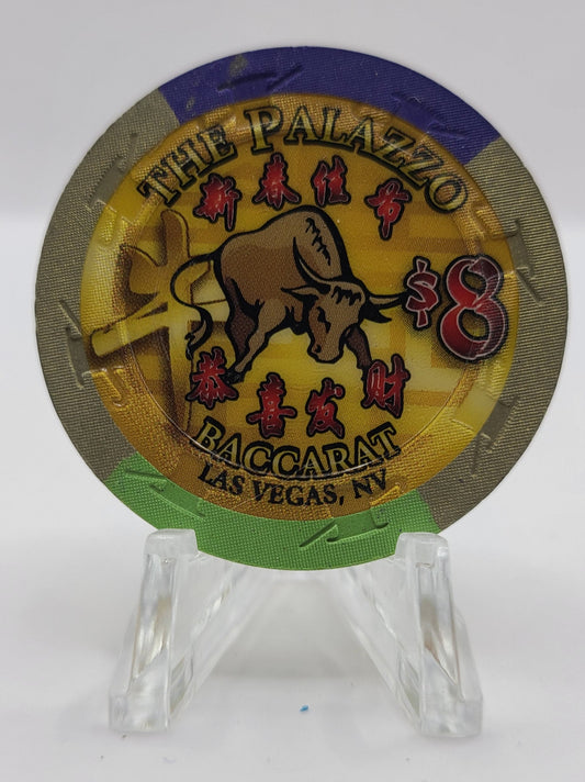 Palazzo Hotel Casino Las Vegas Nevada 2009 "Year of the Ox" 43mm Baccarat $8 Casino Chip