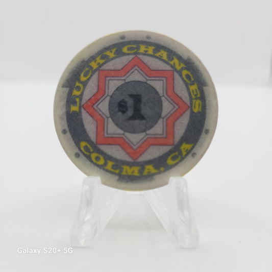 Lucky Chances Casino Restaurant Colma California $1 "Card Room" Casino Chip