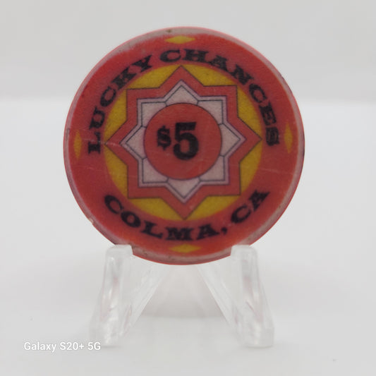 Lucky Chances Casino Restaurant Colma California $5 "Card Room" Casino Chip