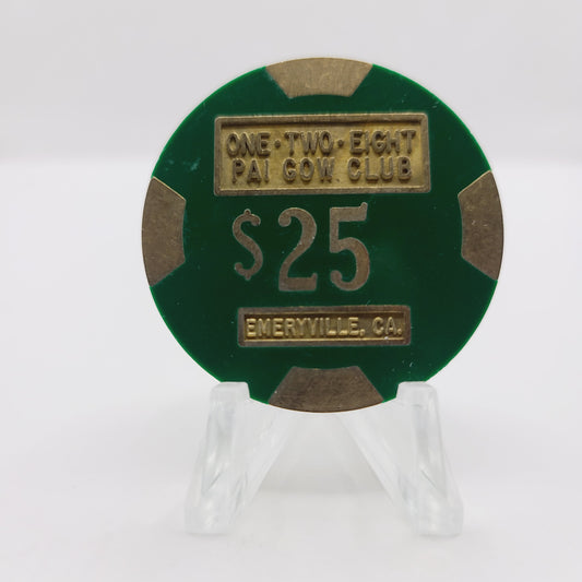 One Two Eight Pai Gow Club Emeryville California "Card Room" $25 Casino Chip