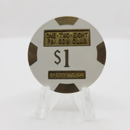 One Two Eight Pai Gow Club Emeryville California "Card Room" $1 Casino Chip