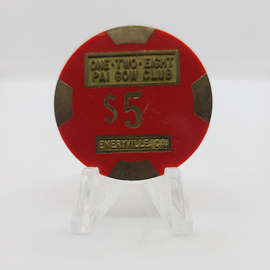 One Two Eight Pai Gow Club Emeryville California "Card Room" $5 Casino Chip