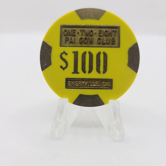 One Two Eight Pai Gow Club Emeryville California "Card Room" $100 Casino Chip CG027809