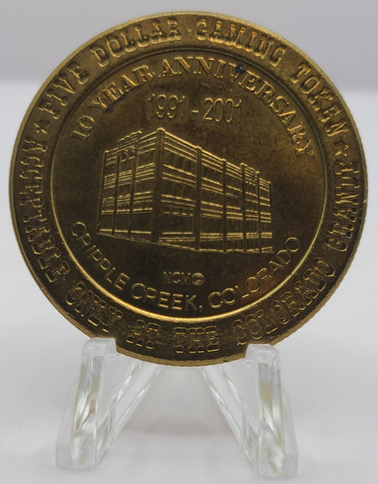 Colorado Grande Casino Cripple Creek CO "10 Year Anniversary " UNC 2001 $5 Gaming Token