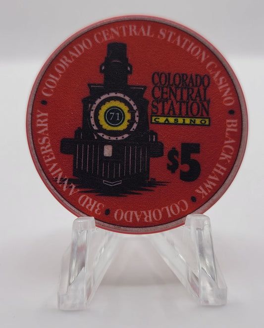 Colorado Central Station Black Hawk Colorado 1996 "3rd Anniversary" $5 Chip