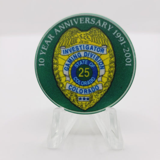 Colorado Division of gaming Lakewood Colorado 2001 "10 Year Anniversary" 25 Chip CG034595