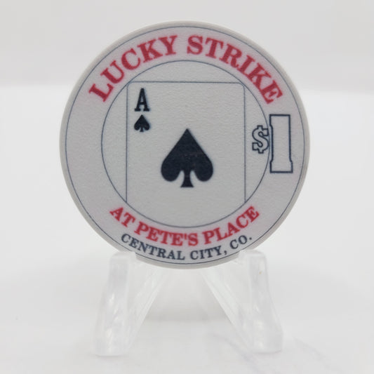 Lucky Strike at Pete's Place Central City Colorado 1996 "Ace of Spades" $1 Casino Chip