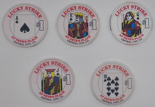 Lucky Strike Casino Central City CO 5 $1 Chips, Spade Royal Flush Series