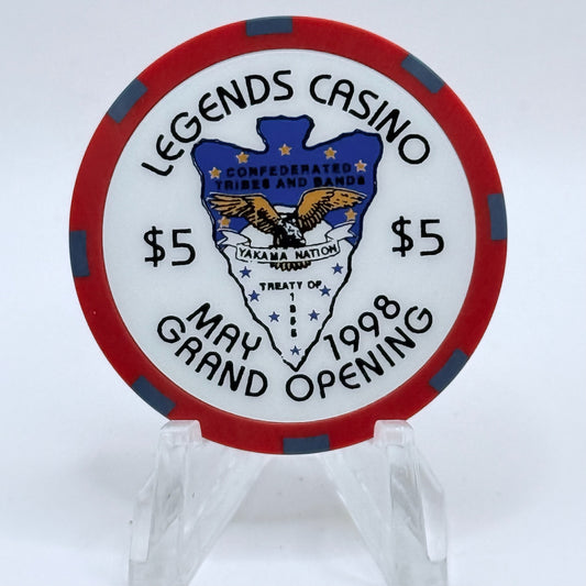 Legends Casino Toppenish Washington 1998 'Grand Opening' LE $5 Casino Chip