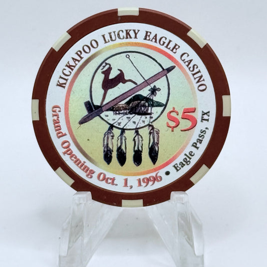 Kickapoo Lucky Eagle Eagle Pass Texas 1996 'Grand Opening' LE $5 Casino Chip