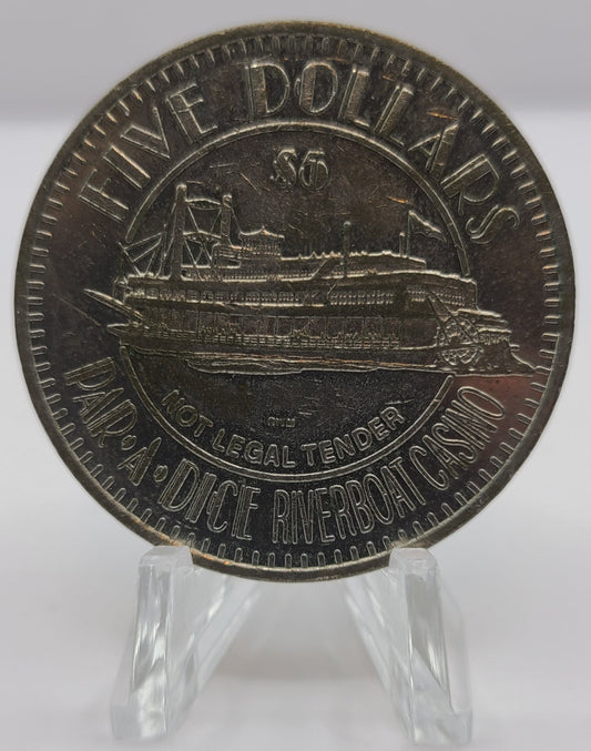 Par-A-Dice Riverboat Casino E.Peoria IL 1991 $5 Gaming Token