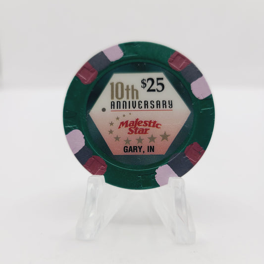 Majestic Star Riverboat Casino Gary Indiana $25 10th Anniversary Casino Chip