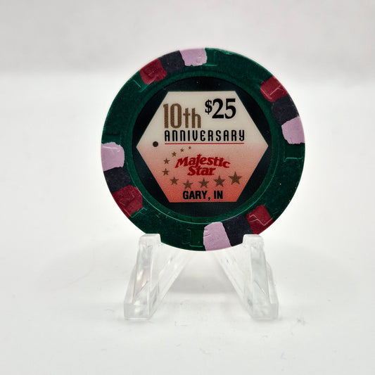 Majestic Star Riverboat Casino Gary Indiana $25 10th Anniversary Casino Chip