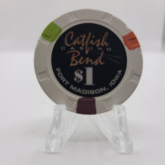Catfish Bend Riverboat Casino Burlington/Ft. Madison Iowa $1 Chip (Worn)