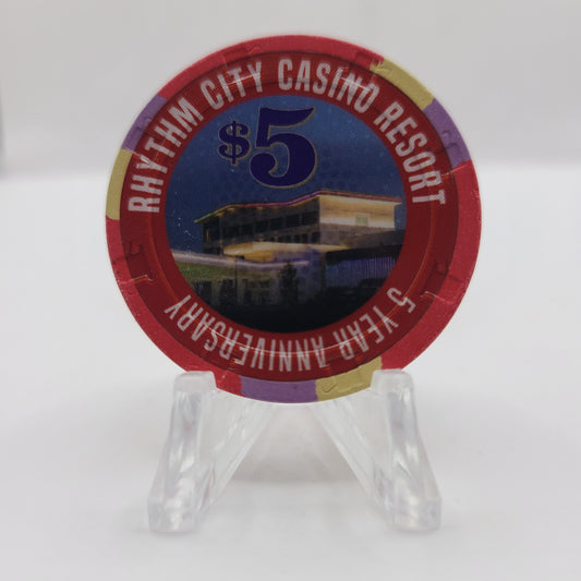 Rhythm City Casino Davenport Iowa 2021 $5 Chip "5 YEAR ANNIVERSARY" LIMITED