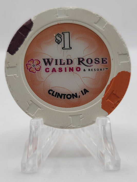 Wild Rose Casino Clinton Iowa 2008 $1 Chip "Worn"