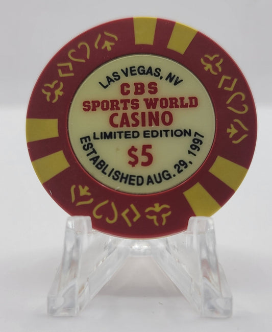 CBS Sports World Casino Las Vegas Nevada 1997 "Grand Opening" $5 Chip N9454