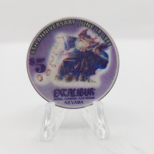 Excalibur Hotel Casino Las Vegas Nevada 1998 "8th Anniversary" $5 Casino Chip N9615