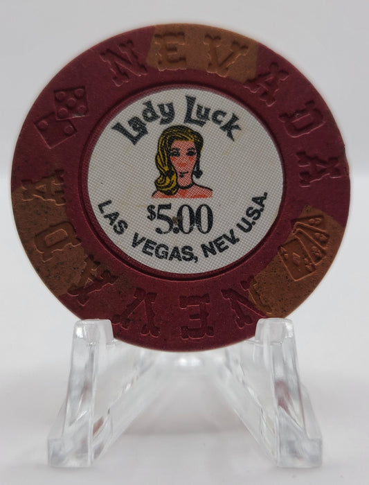 Lady Luck Hotel Casino Las Vegas Nevada 1980's $5 Chip N1839