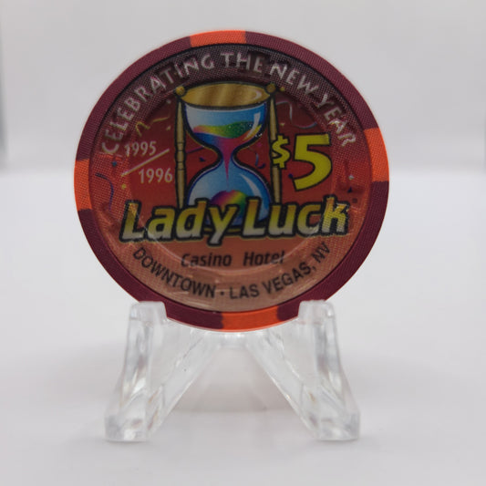 Lady Luck Hotel Casino Las Vegas Nevada 1995 "Happy New Year 1996" $5 Chip N2344
