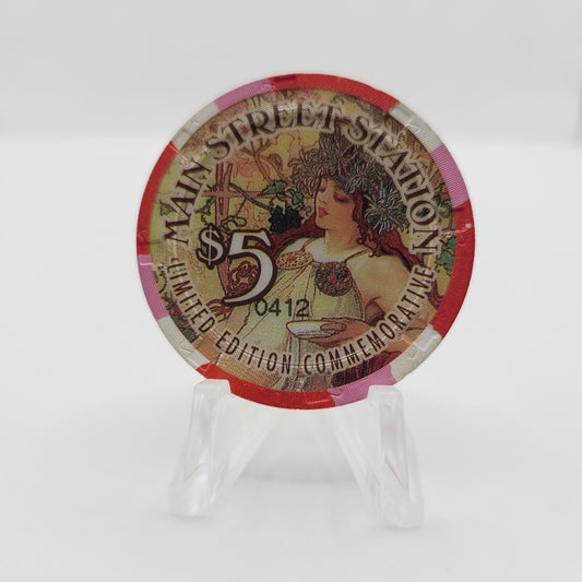 Main Street Station Hotel Casino Las Vegas Nevada 1997 $5 "Autumn" #412 Casino Chip V1069 LTD 1000
