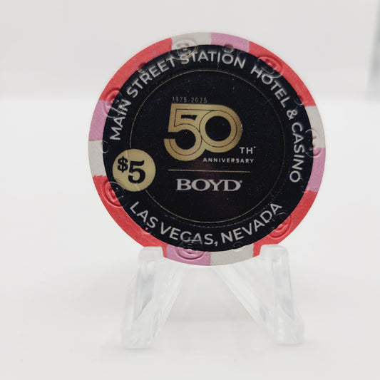 Main Street Station Hotel Casino Las Vegas Nevada 2025 "Boyd's 50th Anniversary" $5 Casino Chip