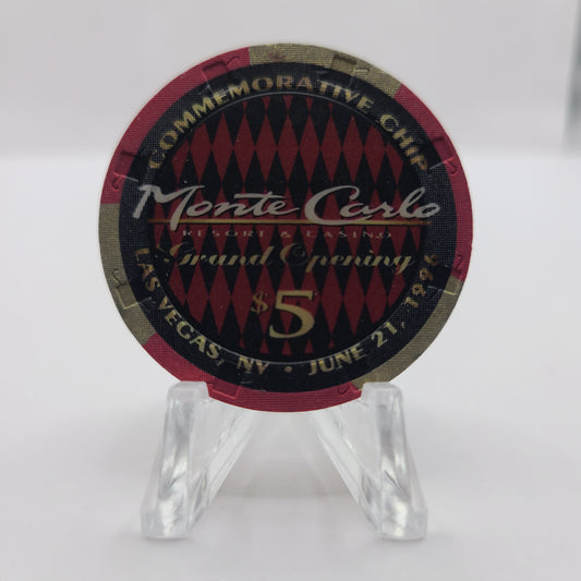 Monte Carlo Resort Casino Las Vegas Nevada 1996 "GRAND OPENING" $5 Chip N8796