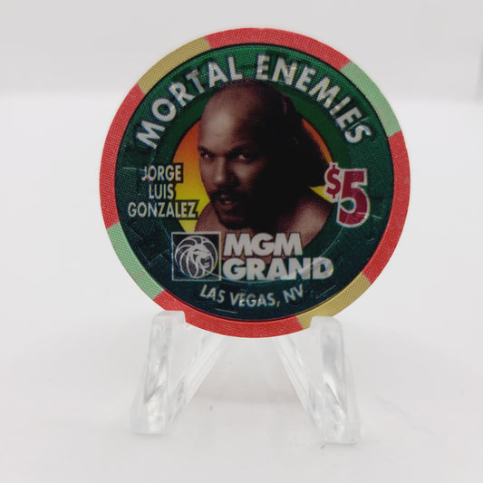 MGM Grand Resort Casino Las Vegas Nevada 1995 "Riddick Bowe vs.Jorge Luis Gonzalez" $5 Casino Chip N1183 LMT 7500