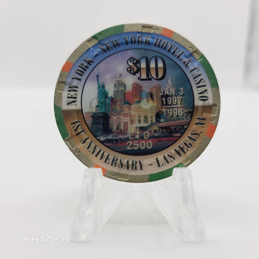 New York New York Hotel Casino Las Vegas Nevada 1998 "First Anniversary" $10 Casino Chip V1190