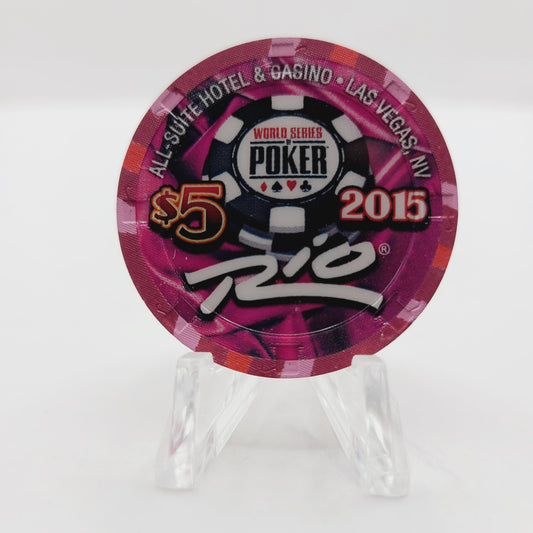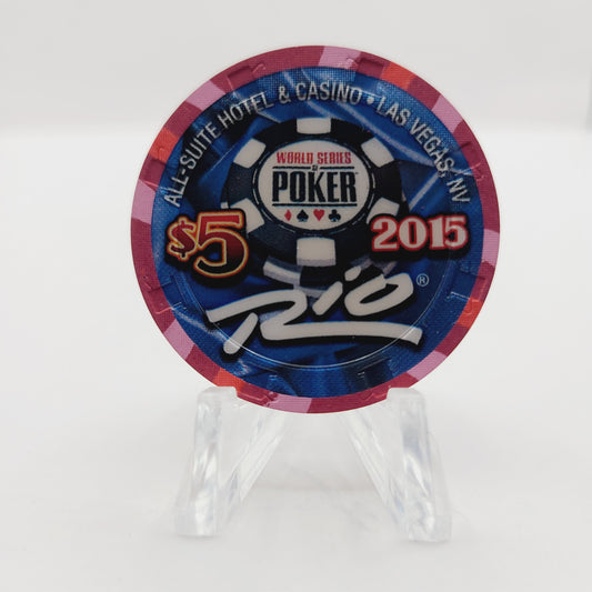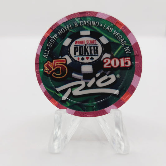 Rio Hotel Casino Las Vegas Nevada 2015 WSOP "Pair of Aces" Five Dollar Casino Chip D1925 LTD 1000
