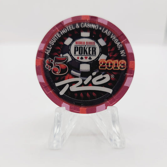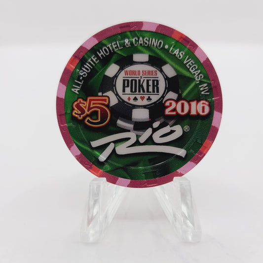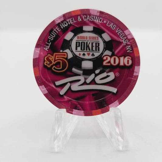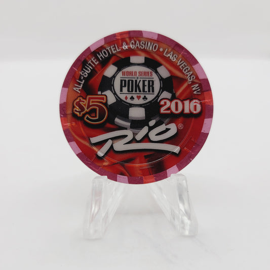 Rio Hotel Casino Las Vegas Nevada 2016 WSOP "Red Aces" $5 Casino Chip D2394 LTD 2500