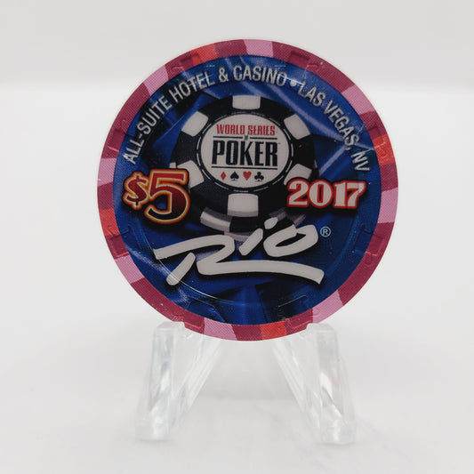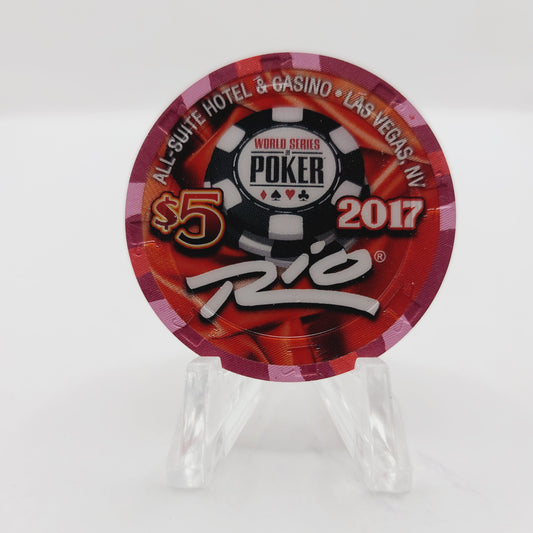 Rio Hotel Casino Las Vegas Nevada 2017 WSOP "Heart Flush" $5 Casino Chip D2601 LTD2500