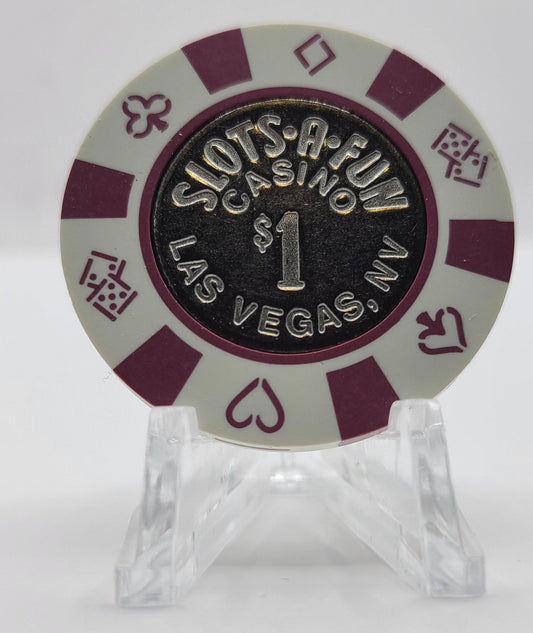 Slots-A-Fun Casino Las Vegas Nevada 1975 $1 Chip N0948.E2 (Rare) **F in Vegas on both sides